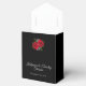 Den här utformningen är den absoluta definitionen av elegans med vackra röd ros på en dramatisk svart bakgrund. Personlig med paret bröllop namn och deras bröllop-datum.