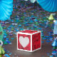 Ett stort foto av ett gäng röd ros på produkter och favoriter från party.