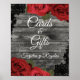 Röd ros Rustic Black Snöre Bröllopskort-tecken Poster