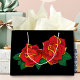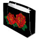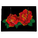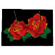 Två röd ros i en svart bakgrund i en traditionell tatuering stil.