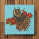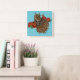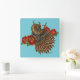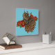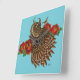 Ett vackert brunt uggla med röd ros och fjärilar i en blå bakgrund