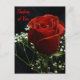 Ett vackert, enkelt röd ros på en svart bakgrund pissar ut ur babyens utandning i denna valentinbild. De små vita blommarna kurvformas vågrätt över bilden, och deras grönt löper nedåt till den nedre högerna. En grönt löv eller två från ro visas också i bildens nedre höger. I det övre lämnat hörnet, i rött skript mot svart, är ord, "Thinking of You". Copyright Gail Storrs 2011.