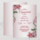 Röd Rosa Blommig Gröna Blad Förlovningsfest Inbjudan. Unik, vacker, stilren design. Lätt att anpassa. Typsnitt, storlek och färger kan ändras. Matchande artiklar finns.