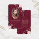 Minneskort för blommigt av elegant med vattenfärg/bankkort för begravning med ett foto med rosa och röd ros och baby utandningsblommor på mörkens röda bakgrund.