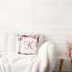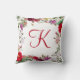 En underbar blandning av röda, rosa, lila och vita blommor med grönska finns i denna design på denna kastkudde. Monogrammet kan anpassas med din initial. Dessa gör fantastiska presentidéer.
