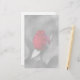 Denna brevpapper presenterar en röd rosenknopp i kontrast till svartvit bakgrund. Symboliskt av renhet och loveliness.