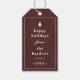 Skapad för att samordna med julkortssamlingen "Rustic Tree", har denna julgåvobricka med träinspirerad design en röd, vintageinspirerad etikett med julsälskapet och utrymme för kundens namn. Det finns en liten tallillustration ovanpå etiketten, samt en subtil trästruktur i bakgrunden. Baksidan av brickan har en fullstor bild.
