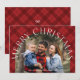 En modern röd rutig boho-båge God jul fotot julkort. Klicka på redigeringsknappen för att anpassa denna design med ditt foto och detaljer.
