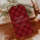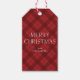Röd rutig God Jul presentetiketter. Klicka på redigeringsknappen för att anpassa denna design med dina detaljer.