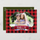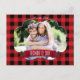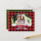 Röd rutig mönster & kottar Rustik fotopostkort. Anpassa med valfri text. Matchande artiklar finns.