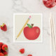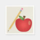 Söt illustration av rött serieäpple och en gul penna som lutar mot äpplet.