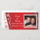 Röd, silver grått, vitt snöflingande vinterbröllop Spara datumfotokortet, med ett vågat band i silver grått med stjärnor och röd elegant snöflingor på ljusröd övertoningsröd bakgrund. Modern och contemporary som ändå passar för ett traditionellt bröllop. Denna elegant-, klass- och snyggt-utformning kan användas för andra särskilda tillfällen, t.ex. förlovningar eller årsdagar. Ett val av perfekt för vinter, december eller bröllop till jul.