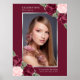 Elegant akvarell röd och rosa blommig fotofirande liv/förfädersdag välkomstskylt med vinröda röda och rosa rosor och babysandblommor som dekorerar en silverfotoram. Matchande föremål finns tillgängliga.