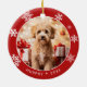 Fira din hund under högtiden med denna charmiga dubbelsidiga keramiska hundfotoornament, med en festlig röd kant med vita snöflingor. Denna ornament är det perfekta sättet att hedra din lurviga familjemedlem och lägga till en personlig, glädjefylld touch till din julgran.