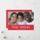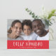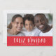 Det här glada julkortet säger "God Jul", eller Merry Christmas på spanska, med modernt fantasifull typografi i vitt på festlig röd bakgrund. Det finns plats för ditt favoritfamiljefoto!