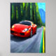 Röd sportbil på väg | AI Art Poster