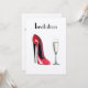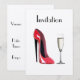Röd stiletto sko och champagne inbjudan