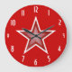 Modern design med en "skuggad" röd och vit stjärna på röd bakgrund. Väggklocka med anpassade som du kan anpassa med din egen text, bilder och dina idéer. Observera att detta är en tryckt bild som skapats med originalfotografier och digitalteknik, som inte skiner eller innehåller riktiga miniatyrbilder.