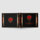 Röd svart och guld bröllop gästbok med vacker röd och guld satin hjärta på en elegant röd svart och guld damask bakgrund. Lägg till texten du väljer i den teckensnittsstil och färg du föredrar. Denna röda svarta och gyllene bröllopsgästbok kan enkelt anpassas med din text på framsidan, baksidan och ryggen.