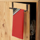 Röd och svart handduk med guld och silver rand för att dela färg.
