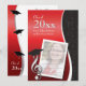 Framlägga en studenteninbjudan eller meddelande för en musiker. Designsärdrag som är röda och som är svart med vitbrytning, färgar tillsammans med en trebleklav och någon varad spökskrivareare musik på det svart området av inbjudan. Skräddarsy med din egna foto och text.