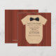 Bedårande beige brun och svart randig, flugbaby pojke dop/dopp inbjudan. Söt röd babytröja med fluga på en tan och svart randig bakgrund lille man baby boy shower inbjudan är lätt att anpassa för ditt evenemang. Lägg till dina uppgifter på framsidan och/eller baksidan genom att helt enkelt välja "Anpassa!" knappen för att börja lägga till dina evenemangsuppgifter, teckensnittsstil, teckenstorlek och färg samt formulering. Observera - alla inbjudningsdesigner du hittar på Zazzle är tryckta grafik utan faktiska juveler, band, upphöjda, präglade eller tillagda delar eller bitar.