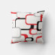 En coola som återger inspirerad utformning av röda, svarta och grått fyrkanter mot en vit bakgrund på en kudde