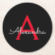 Röd Svart Skript Flickaktig Monogram Namn Underlägg Papper Rund