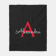 Röd och svart falskt skript monogram lägg till eget namn fleece filt. Detta gör den perfekta söta 16-års födelsedag, bröllop, bröllopsdusch, årsdag, baby shower eller möhippa present för någon som älskar glamour lyx och chic stilar.