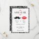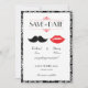 Röd, svart & vit mustasch & läppar Damask bröllop Spara Datumet