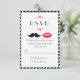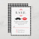 Läckra röda läppar och en elegant mustasch är huvudstjärnorna i denna moderna & eleganta bröllopsinbjudan. Houndstooth-mönstret i bakgrunden tillför en effortless retro-charm.