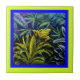 En rik rik djungeldesign med grön lövverk och att välva sig nedanföra Bromeliads växter en livlig guld- grönt, röd synad trädgroda som balanseras fint på en gren. Denna groda är i familjen av "giftpilgrodor" och nu hotade arter. Denna underbara grodadesign är delen av en större olje- triptych som bemyndigas av en konstsamlare år sedan. Det finns annan fantastisk kudder och kaffe koppar, med att matcha designer i detta lager.