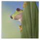 Röd synad Tre groda som bakifrån kikar ett löv Kakelplatta