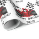 Denna design presenterar en röd tävlingbil med tävlings- flaggor. Du kan skräddarsy namn, genom att redigera texten, boxas.