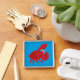 Röd tecknad krabba fyrkantig silverfärgad nyckelring