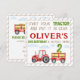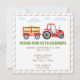 Rödfärgad rödbrun traktorpojke 1:a eller 2:a födelsedagsinbjudan, inbjudan 2:a grönt.