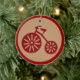 Rund ornament med en vintage 1940s-bild av en röd trehjuling i en bruna cirkel på rött. Baksidan är röd med valfri text. Se hela Patriotic 40s Ornament-samlingen i SPECIELLA TUUCHES | Avsnittet Party favors.