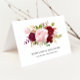 Detta röda tropiska och romantiska tackkort är perfekt för ett enkelt bröllop. Den konstnärliga bordo marsala-designen har akvarell, gröna, rosa, vinröda och rosafärgade rosor tillsammans med grönska snyggt arrangerade i en graciös och strålande blomsterbukett.
