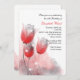 Tre röda tulpan mot en vitbakgrundsgnistra och krökning i brisen. Inbjudangäster till en födelsedag, en årsdag eller en dusch med denna vårdesign med det nya rundat tränga någon. Önska att spara några pengar? Beställa inbjudningarna i det grundläggande vitpapperet.