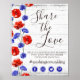 Bjud in dina bröllpsgäster att engagera sig med foton! Fånga varje ögonblick av din speciella dag och lägg upp på sociala medier med en anpassad hashtag. Vackra, livfulla röda vallmo och vackra blå kornblommor ger en energisk färgklick mot en rustik vitmålad träbakgrund. Denna moderna lantliga design med en touch av farmhouse-stil är full av charm från vilda blommor för det romantiska countrybröllopet!