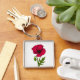 Röd vallmo teckning fyrkantig silverfärgad nyckelring