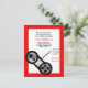 En rolig inbjudan för något videospelparty. Den presenterar en ljus röd gräns. En svart- och silvervideospelkontrollant sitter på grundstunderna som det bästa är för din information om partyet. Få på din lek med denna inbjudan!