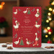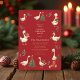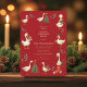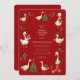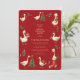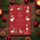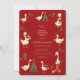 Denna charmiga julfestinbjudan har söta vintagegäss iklädda festlig klänning, omgivna av julgranar, sockerrör och andra julelement. Designen är mot en rik röd bakgrund som skapar en varm och inbjudande atmosfär. Den är perfekt för att skicka ut till familj och vänner för att fira högtiden på ett unikt och minnesvärt sätt. Personalisera den med dina festdetaljer och skapa ett klassiskt julkort som dina gäster kommer att älska. Denna inbjudan är idealisk för en årlig julfest och blir en underbar souvenir för dina gäster. Fira din högtid med detta charmiga kort som passar evenemangets tema perfekt.