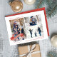 Skicka varm julstämning med detta vintage julkort med klassisk julfrimärkesdesign och glad Santa Claus-illustration. 🎅✨ Med sina enkla röda accenter, söta festliga detaljer och tidlös stil visar detta julkort vackert upp ditt favoritfamiljefoto. Perfekt för att sprida glädje och nostalgi denna julssäsong.