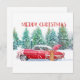 Här är ett coolt julkort för dem som älskar vintagebilar. Ett gammalt rött kort och släde i ett vinterlandskap.