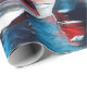 Den här schackdesignen har ett rödvitt och blått färg-schema med Kung, drottning, biskop och pawns.