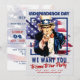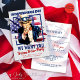 Gör dig redo att tända din patriotiska fest med vår festliga röda, vita och blå Uncle Sam-firande-inbjudan för den 4:e juli! Perfekt för bakgårdsgrillfester, poolside-samkväm, fyrverkerifester eller någon annan självständighetsdagsfirande, sätter denna livfulla inbjudan tonen för en minnesvärd amerikansk högtid. Omfamna anden av den 4:e juli med en design som sprudlar av nationell stolthet och klassiskt charm. Denna iögonfallande inbjudan visar en fantasifull men ikonisk framställning av Uncle Sam, iklädd sin karakteristiska röda, vita och blå dräkt, redo att fira! Den livliga bakgrunden är översållad med patriotiska stjärnor och ränder, som frammanar den glada energin av