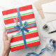 Röd, vit, Grönt Färgad jul Linjer Presentpapper