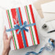 Den julinspirerade utformningen har en grönt, vit och röd färgad rand mönster. Det kan vara roligt för använda att slå papper som detta när man slår in presenter eller gåvor som ges i firande på en födelsedag, bröllop, en årsdag eller något annat evenemang.