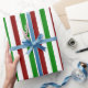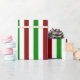 Den här pappra designen har julinspirerad rand färgad grönt, vit och röd. Det kan vara roligt till använda när du förbereder gåvor eller presenter i firande på en födelsedag, bröllop, en årsdag eller något annat evenemang.